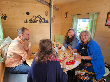 Die enge Verbindung seitens Martina Model mit den HeimatUnternehmen in Mittelfranken wurde auch durch das Mitwirken weiterer Experten aus dem Netzwerk sichtbar. Fredi Orazem, Gründer von Tiny Eco Village, referierte über Tiny Haus Dörfer und Visionen für nachhaltiges Leben. Lisa Kallip, Mentorin für innere Transformation, Energie- & Atemarbeit, leitete eine Gruppe ins Fühlen statt Funktionieren.